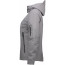 Glat yderside (softshell kvalitet) og vatteret bagside. Fronten har lynlåslukning og to store lommer med lynlåslukning. Lynlåsene er grå. Der er en lynlåslomme på venstre ærme. Ærmerne har en skjult ribkant for neden, der lukker ærmet til. Hætten er aftagelig.